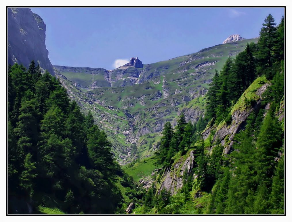 Am ajuns la punctul in care Costila pare atat de aproape. Iata-ne la marginea caldarii superioare a Vaii Cerbului, undeva la altitudinea de 2170m. Releul de pe Costila pare ca strapunge seninul cerului... Coltii Obrasiei isi fac ei simtita prezenta, iar Cerdacul Obrasiei ne impresioneaza prin aspectul sau impunator, asemenea unui perete ce inchide aceasta vale glaciara. Spre Nord-Nord-Est, Morarul scoate Coltii la noi ( Coltii Morarului). Poate asa este el obisnuit sa ne spuna "bine ati venit", aici, in lumea alpina. Iar jos, Valea Prahovei clocotea in arsita lui iulie.
